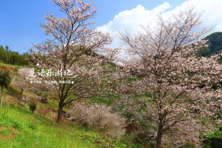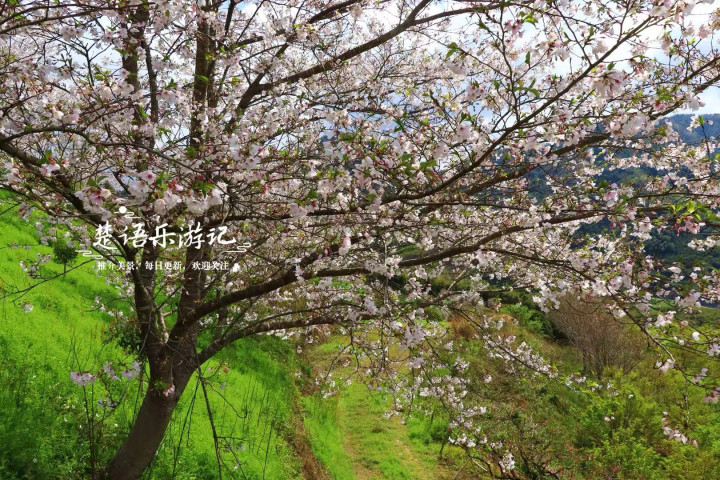 这几棵樱花树皆助长在山腰,咱们不错站在树下,也不错稍许往上走一段,以平视或俯瞰的角度来观赏樱花。树下是机耕路,而路边即是山谷,远方是连绵的青山,多种景物相映,造成的表情尽头优好意思,拍照也很出片。