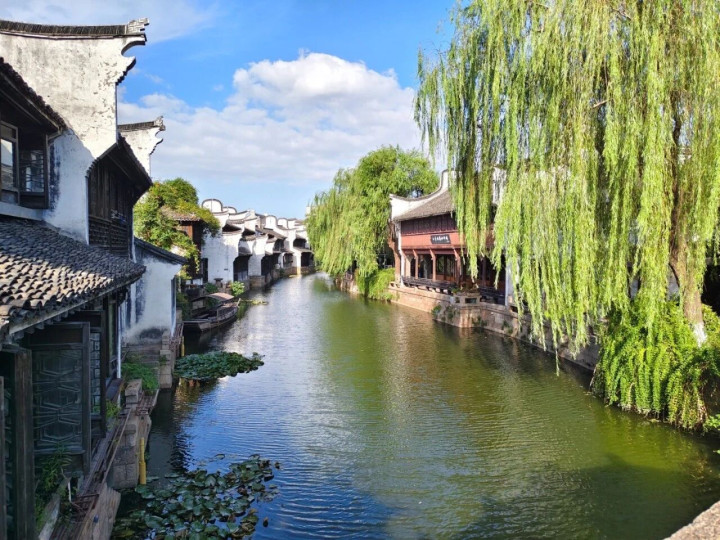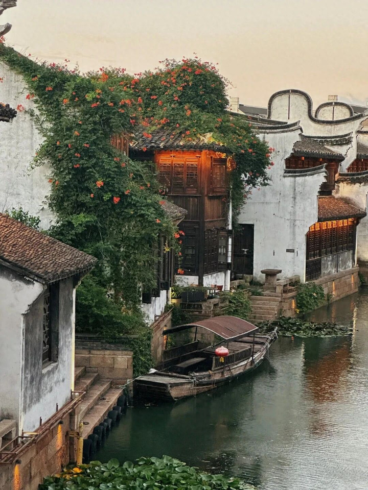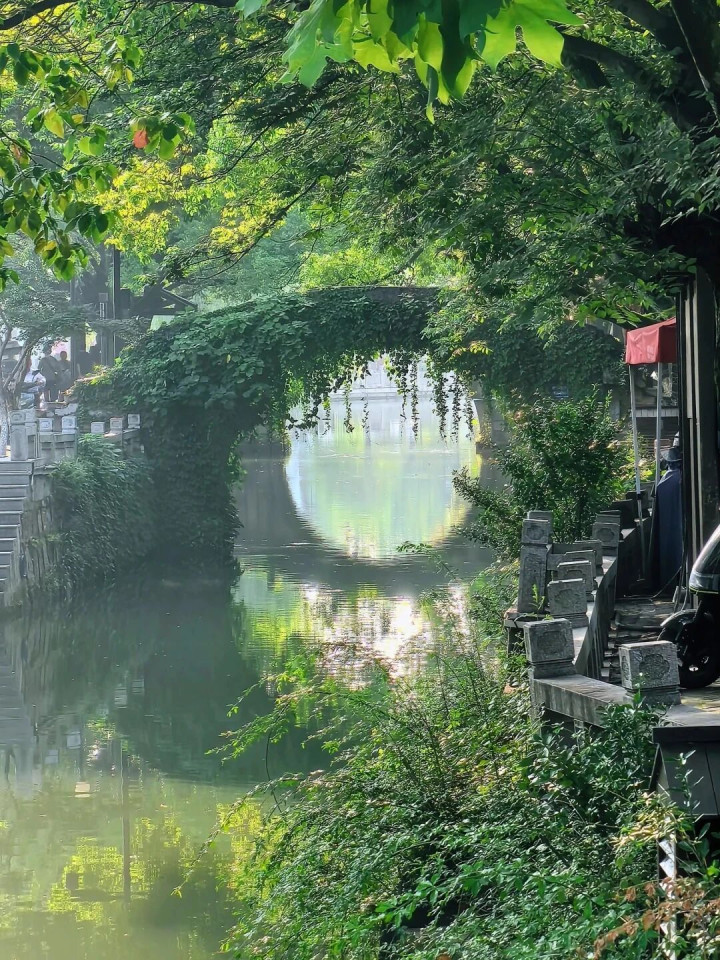 青石板路被岁月打磨得温润发亮,两侧的老屋子依旧住着东说念主家,一楼开着小店,二楼曝晒着穿戴,生涯气味扑面而来。胡同口那家粽子店,雇主娘已包了三十年粽子,手速快得让东说念主看不清,可她并非在饰演——她仅仅在崇拜地过着属于我方的日子。街上的酱鸭店、糕点铺、茶楼,皆是腹地东说念主自家指主义,莫得刻意的吆喝声,走动即兴,平稳安心。 最散漫的,莫过于沿河那段长廊。寻一处石凳坐下,看乌篷船慢悠悠地划过水面,看对面的老东说念主坐在门口晒着暖阳。水是碧绿的,柳是青翠的,风一吹,柳枝轻拂水面,荡起一圈圈仁爱的荡漾。莫得东说念主催促你离开,也莫得东说念主跟你争抢座位。念念拍照便拍,念念怔住便怔住,这种“刚刚好”的疏漏感,在别处竟然难以寻觅。