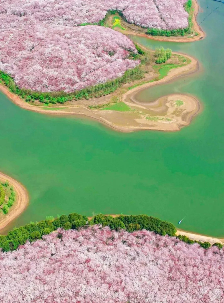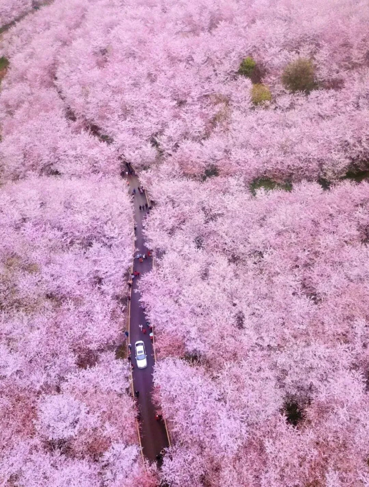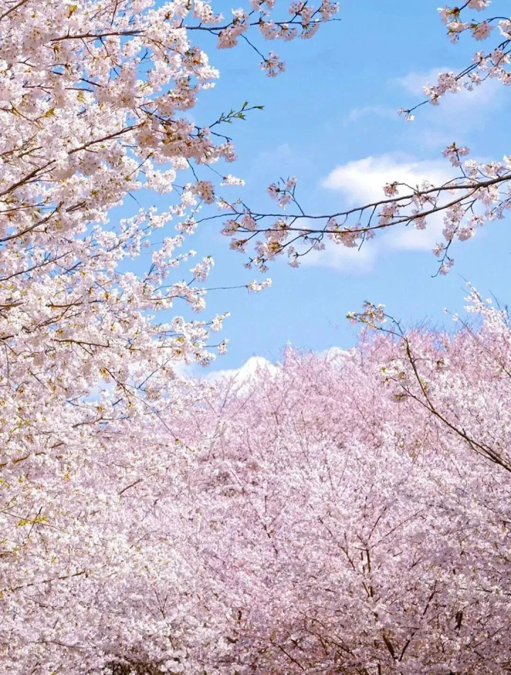 每年3月到4月,万亩的樱花随风摇曳,在这粉与白之间谱写下属于春天的极致放纵。