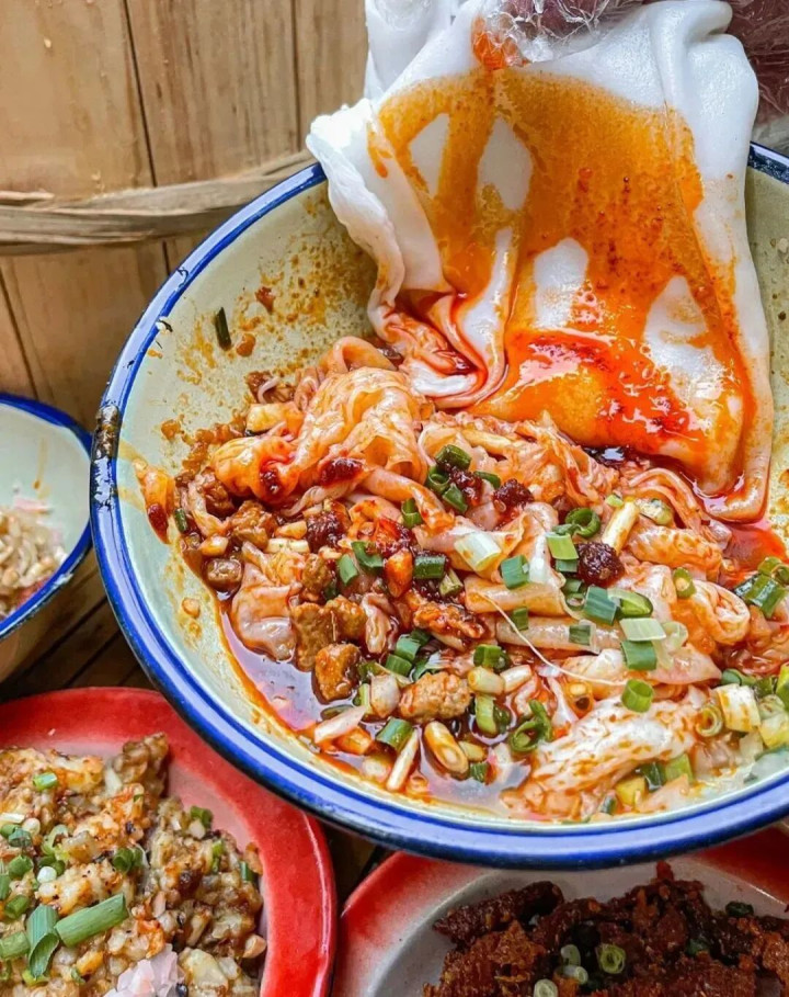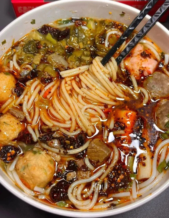 走进贵阳的街头巷尾,你就能将各地的米粉都尝一遍,毕竟这里就是米粉的“天地中心”。 一碗花溪牛肉粉既是贵州东谈主的乡愁,也将一段段历史揉进了鲜浓的好意思味中。 早年间,贵阳牛肉粉并没被称为“花溪牛肉粉”,直到1976年,花溪十字街出现了第一家牛肉粉摊铺,这等于花溪粉的前身。 一碗隧谈的花溪牛肉米粉,必定是粉、汤、牛肉的齐全调和,牛肉用的是精致黄牛肉,再经由十余种香料秘卤。 煮牛肉的汤就用来打底,手劳动念的米粉爽滑柔韧,上桌前再加上煳辣椒粉、芫荽、泡菜等配菜,一口唆下超等得志。 羊肉粉 逛过贵阳街头的都知谈,羊肉粉在当地的地位。说贵州东谈主是被一碗羊肉粉叫醒的,少量都不夸张。