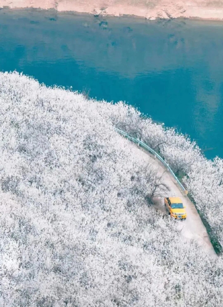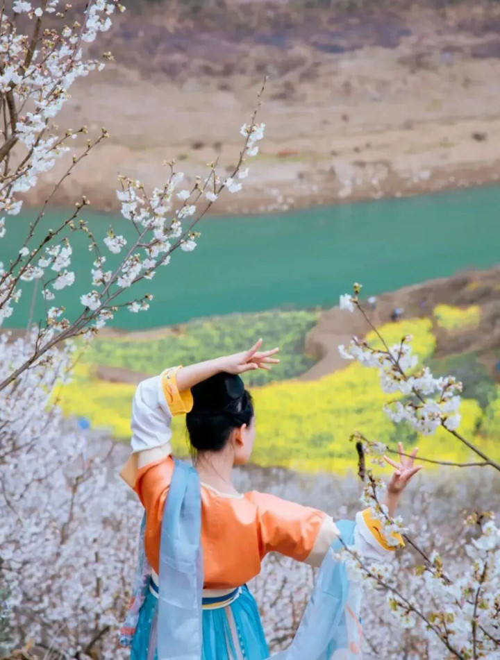 安静的峡谷,潺潺河流,配上忽如通宵春风的满眼樱花树,这幅壮阔的江山图,谁又能不爱呢。