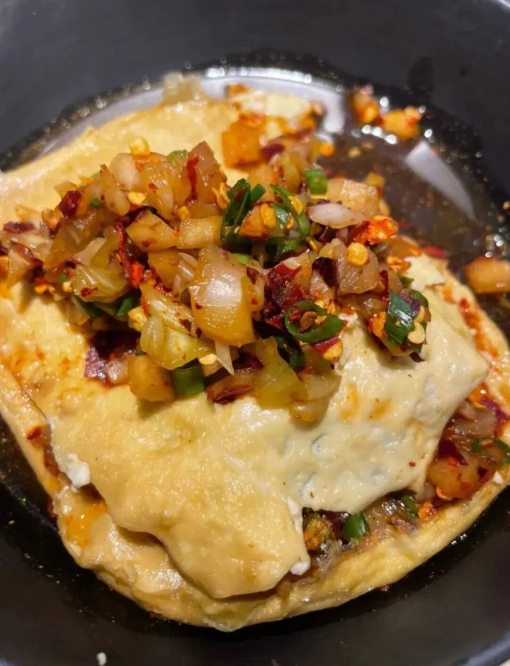 而肠旺配面,吃起来的口感比米粉要好上许多。一碗汤底红辣香浓的肠旺面专门用纯海鸭蛋和的竹升面来搭,当热辣的红油现泼上去,挂汁一流。 大肠也管束得盘靓条顺,血旺吃起来还啵啵嫩,关于喜辣的贵州东谈主来说,一周不吃就会思。 豆花面 贵州东谈主作念蘸水,齐万能与四川东谈主并列,一碗纯洁的豆花面,必须以一碗油辣蘸水为主调。