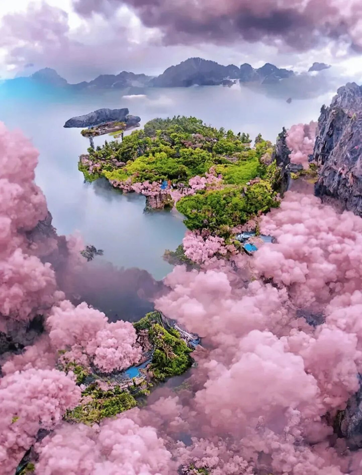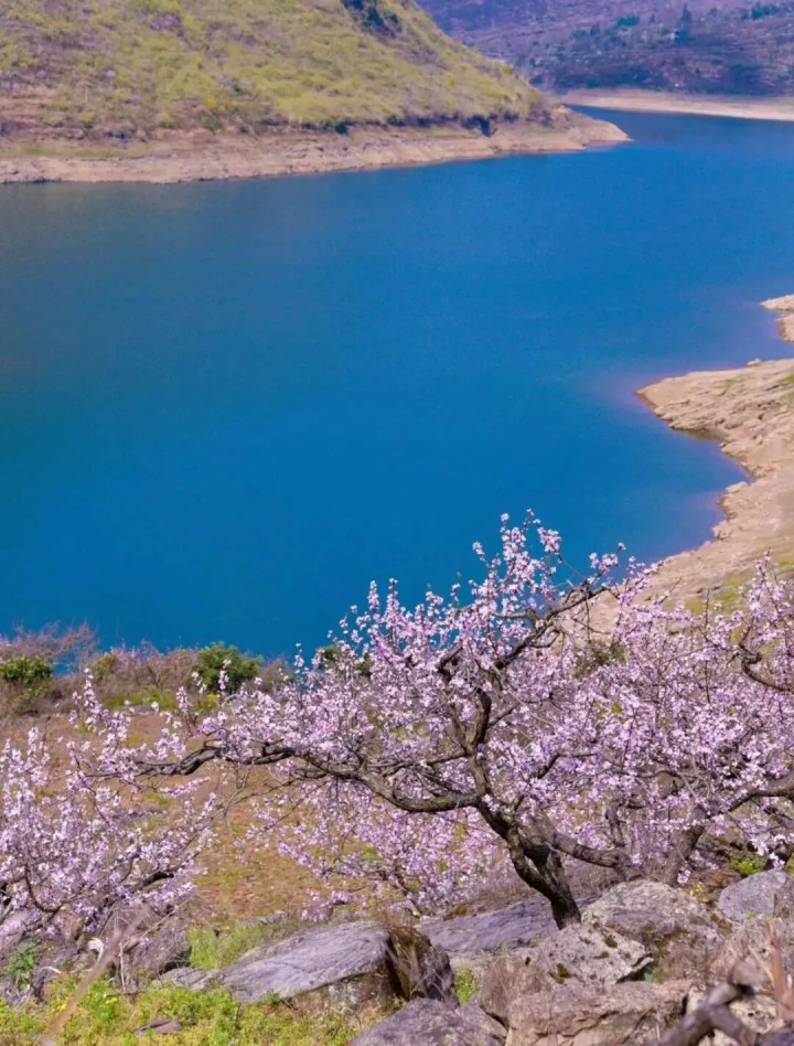 青瓦白墙的民居,背靠青山,面对清溪和花田,嵌于锦峰绣岭的当然表象里,山水滴缀,步步都景。 屯子、花田、山岭互相和会,勾画出贵州春日里最动东谈主的细语。固然不仅春色迷东谈主,秋天来这相通好意思若惊鸿。 普定-桃花岛 每年三月中,夜郎湖畔漫天彻地的桃花像极了金庸笔下的桃花岛。