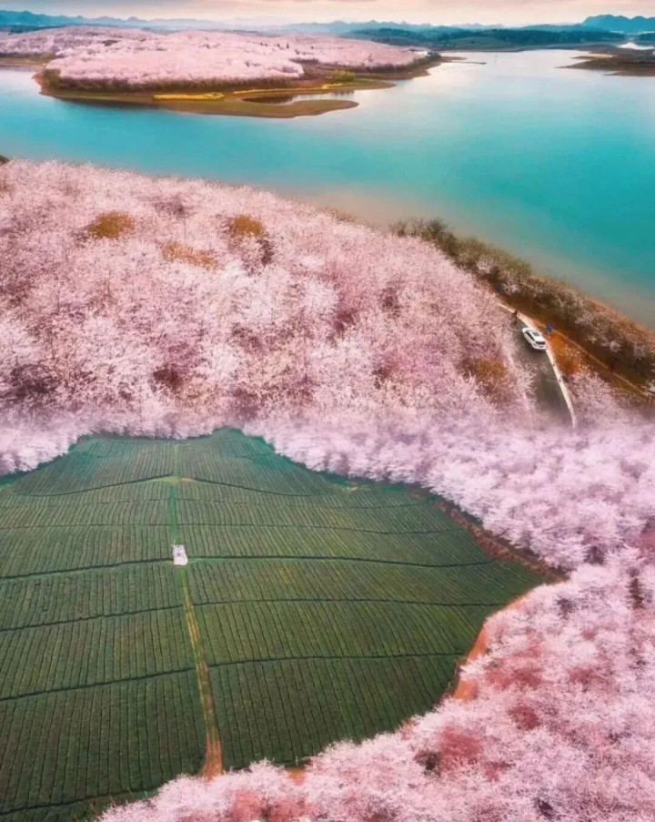 这个春天总要来贵州,看一场“世界级”樱花雨吧。 贵州平坝樱花,用70万株的樱花树惊艳了世界。当偌大的红枫湖邂逅延绵的樱花花海,当茶香四溢的茶田成为樱花树的点缀,一切都要比咱们思得愈加好意思好。