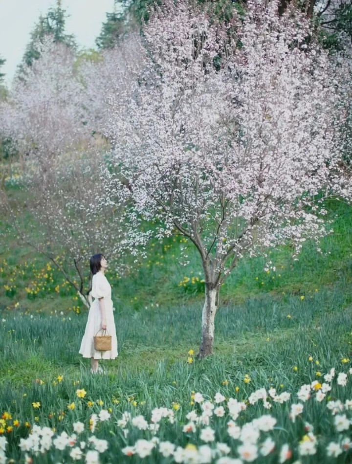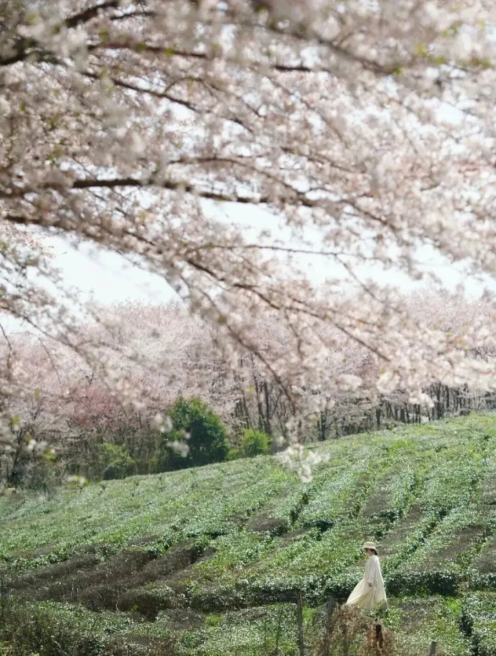 它比平坝樱花圃远20分钟车程,但东谈主会相比少,很符合慢悠悠的赏景、拍照。 这里的樱花大多为白樱,基本都教育在杂沓有致的山坡上,樱花海的视觉感很好。若是好天去,还能挑一个视线好的山坡野餐一番,格外舒心。