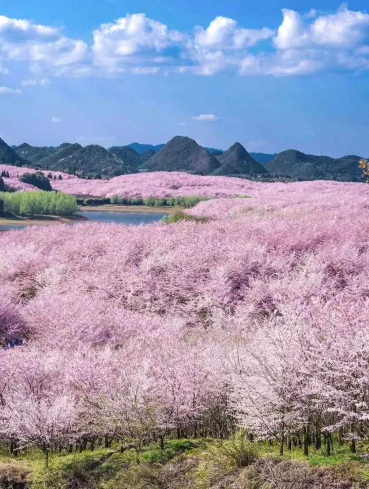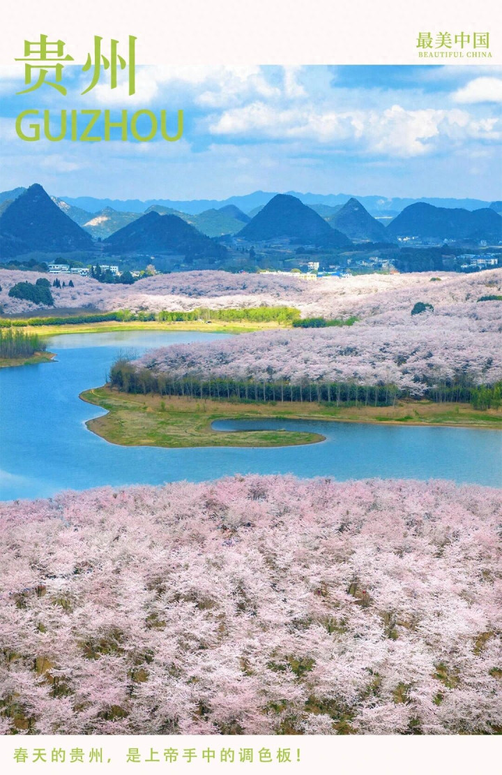 趁春天还在,来见见花开时的贵州吧。这一程春野烂漫,真但愿,能在这样的绿意和烂漫里,与你沿路拥抱好意思好。
