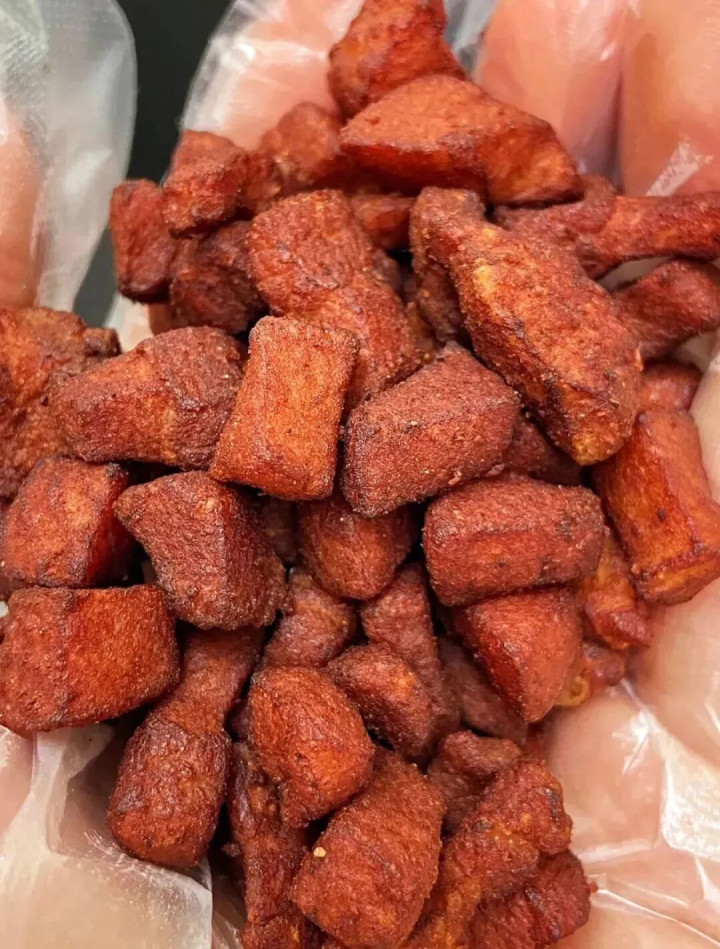 行动高原上的“天府之国”,贵州的糯米有一种让东谈主无法远离的醇香,况兼吃起来是糯而不粘。 现蒸出来的糯米饭香气四溢,口感很有嚼劲,最挫折的是还会加上脆哨、折耳根、萝卜丁等超多料,临了还会放入辣椒和糖,咸、辣、甜味在舌尖上交汇,真的就是一口惊艳。 脆哨 提到了贵州的粉、面和饭,就不得不说说这“配料之王”的脆哨了。它有个往常的名字叫“猪油渣”。