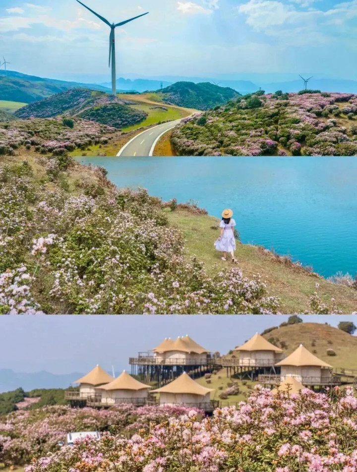 来贵州看“最好意思春色”:为这花开烂漫,奔赴而来 贵州的春天,像一幅染满色调的山川画卷,这幅画里有金鸡峰丛和万峰林的油菜花,有毕节的百里杜鹃,有乌蒙大草原的风车与花海,也有桃花岛的樱桃花,见过的每一眼都是放纵。