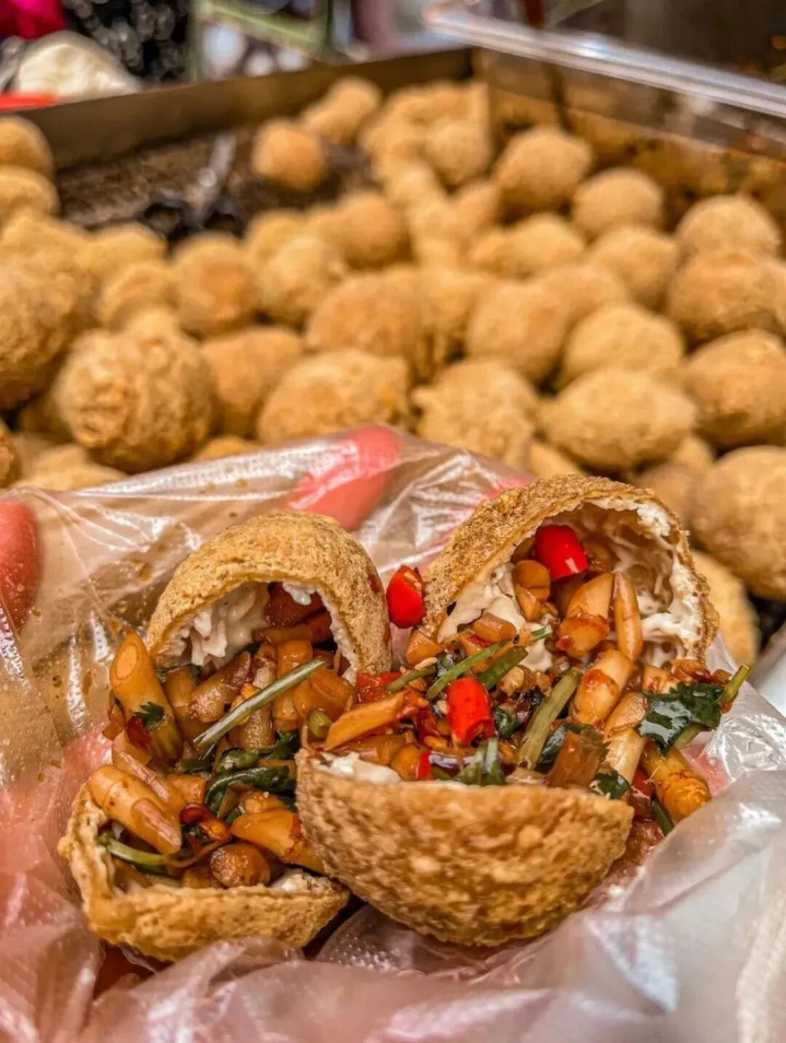 要知谈贵州豆腐,很少用卤水或石膏点,而是用当然发酵的酸汤,凝固为豆腐,这样吃起来会更水润。 豆腐圆子就是将豆腐碎成泥进行干炸,进口外酥里软,外表脆韧,内馅也超多,吸进嘴里时,号称一绝。 恋爱豆腐果 和豆腐圆子不同的是,恋爱豆腐果是煤火烤制而成的,要经由束缚的回转,然后还会抹上香油等。