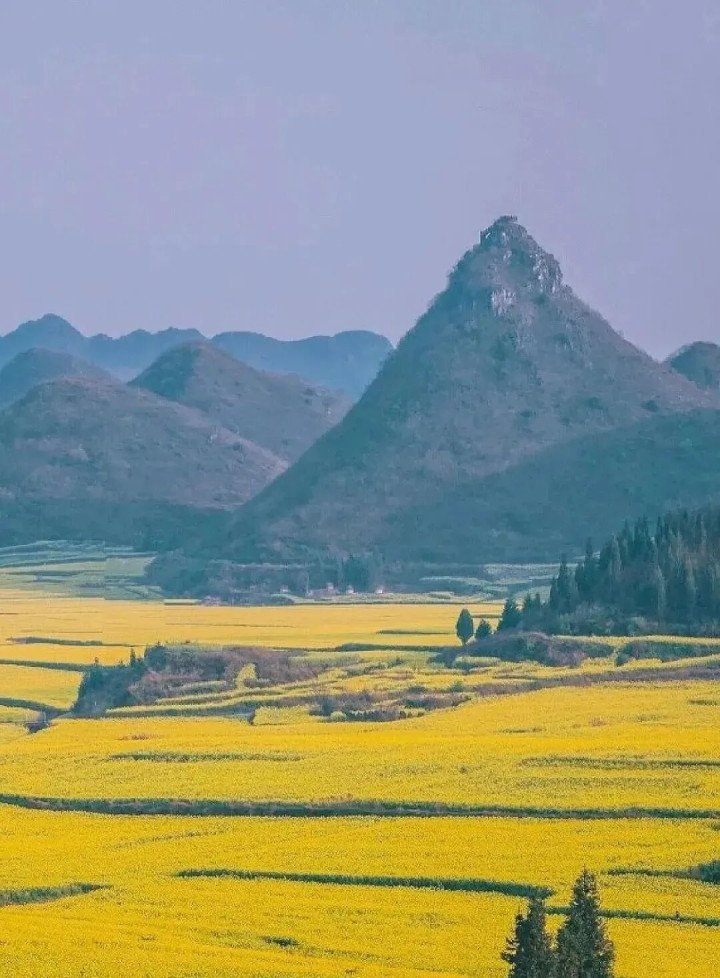 罗平-金鸡峰丛 领有20万亩油菜花田的罗山地处北总结线之南,是中国油菜花最早盛开的场地,亦然《国度地舆》保举一世必去的50个景点之一。