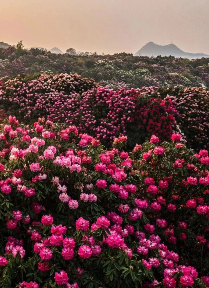 每年三月中下旬到四月,山间的杜鹃花便接踵怒放,微风拂过,织起这片摇曳的烂漫花海。